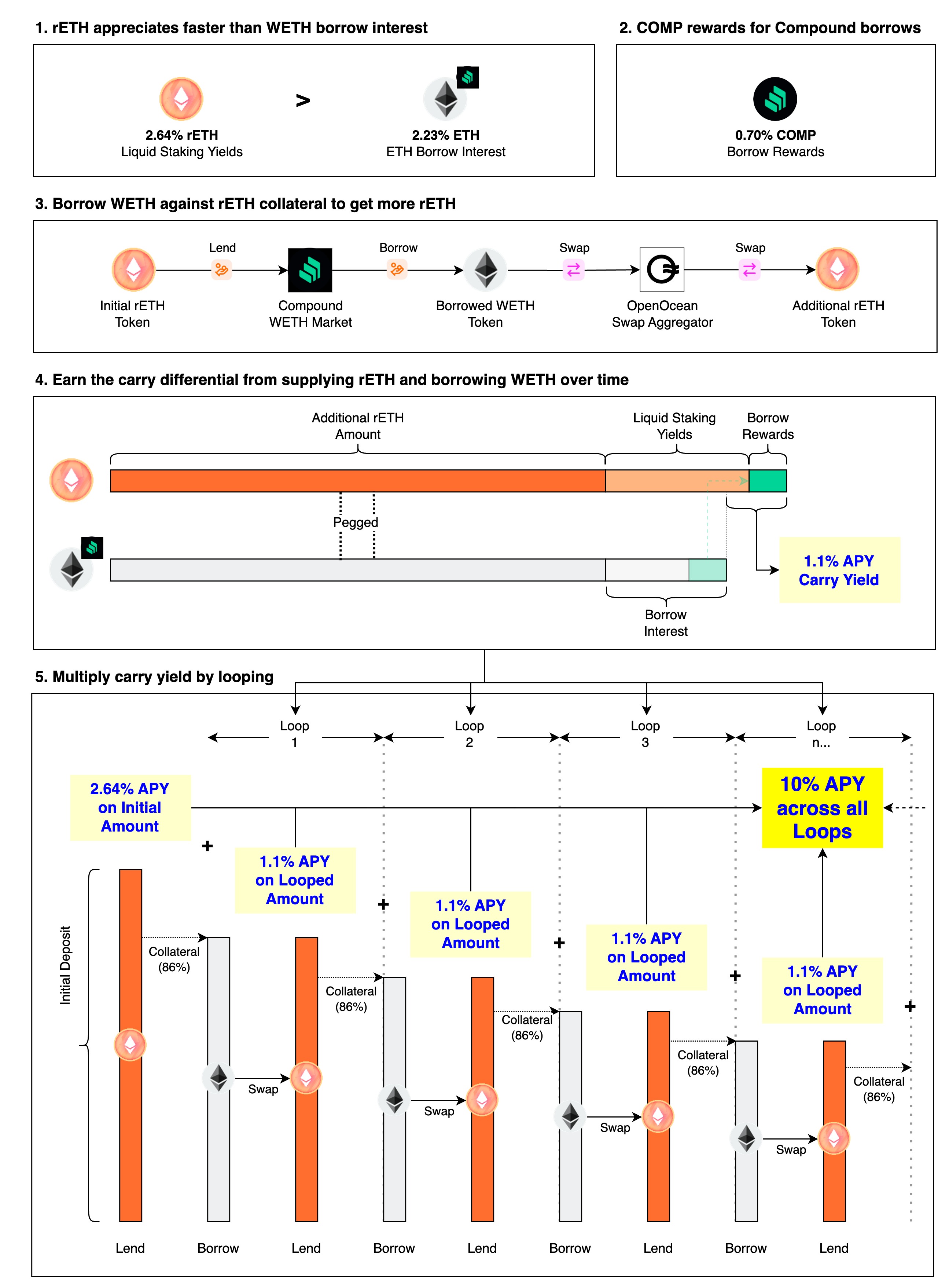 * WETH borrow cost is less than rETH liquid staking yields plus COMP rewards