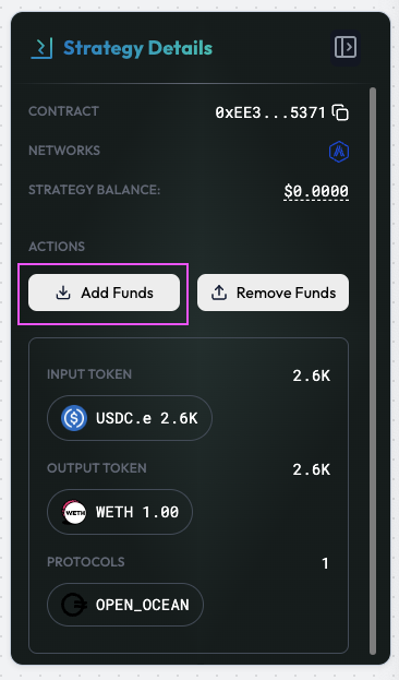 Upon deploying your strategy, you will be able to view the contract address under the Strategy Details.