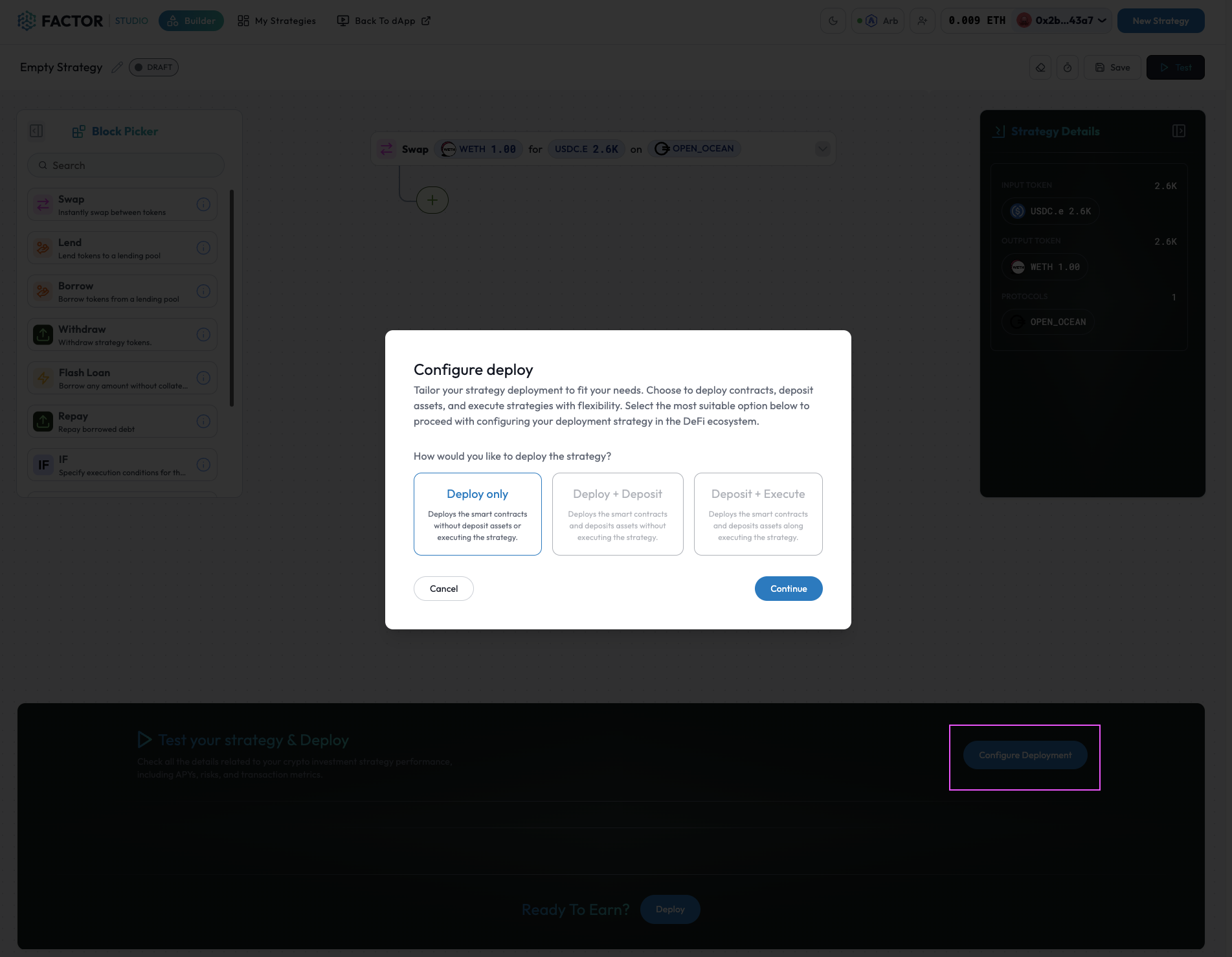Once your strategy has passed the test, you can deploy your strategy vault by clicking the "Configure Deployment" button at the bottom of the page.&#x20;